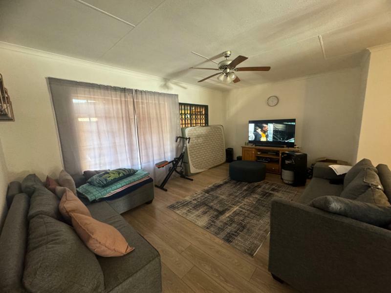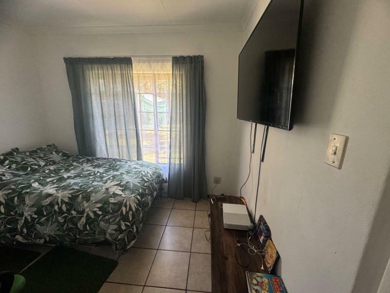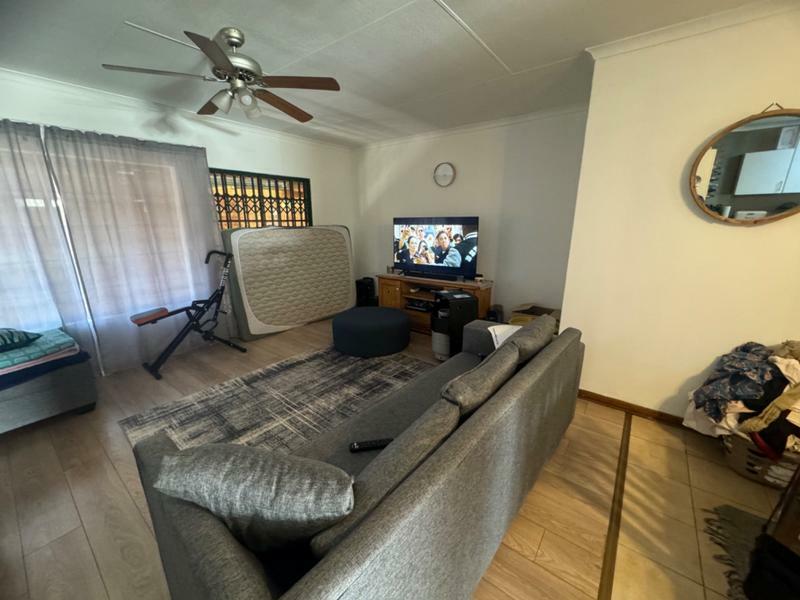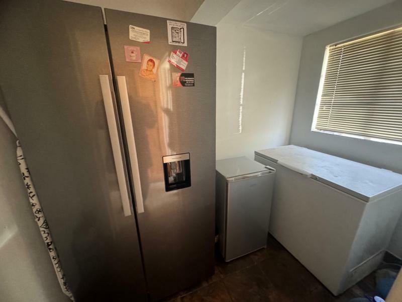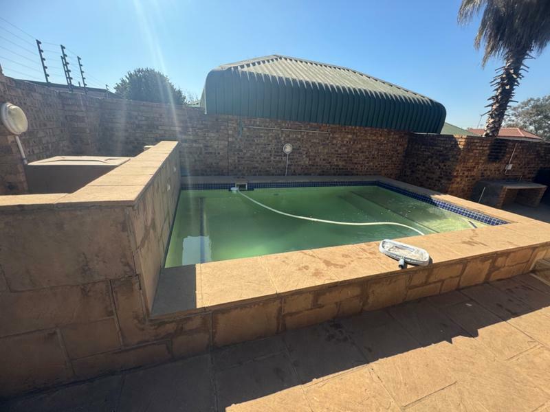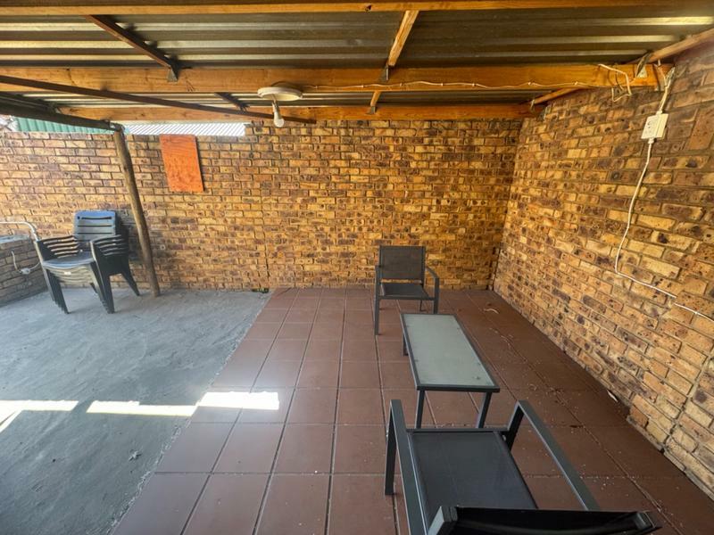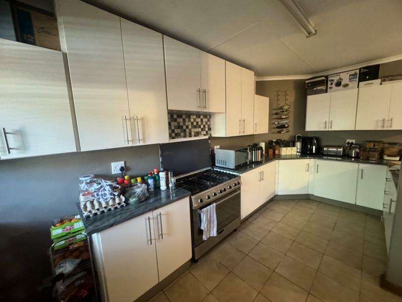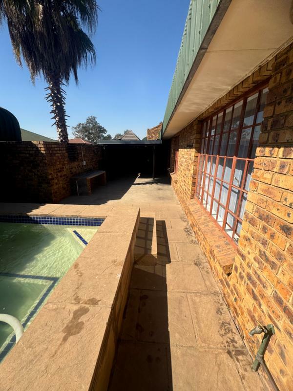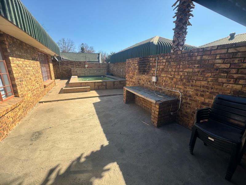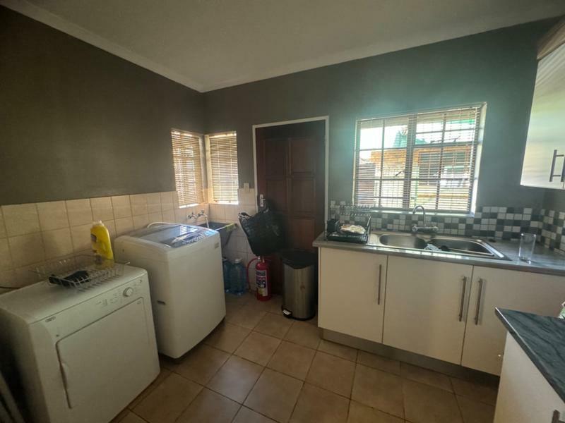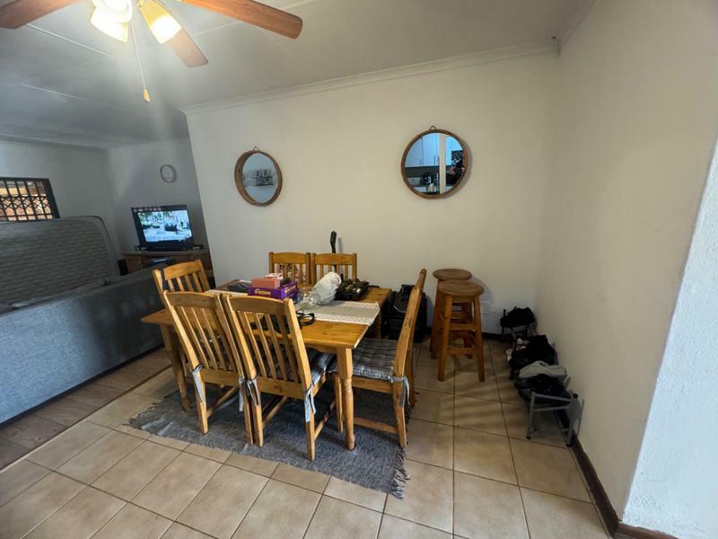 The dining room and lounge is spacious, leading to the patio with the braai, next to the pool.