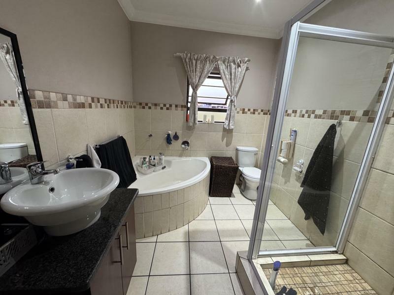 Great find in Roberts estate - a modern 3 bedroom duplex with 3 bathrooms, a double garage, balcony, patio, open plan living area next to a modern kitchen with a scullery and breakfast nook.