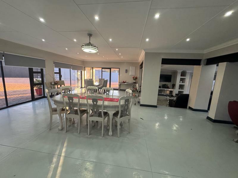 The entertainment area is adjacent to the pool ( new motor) and comprises of a boma area, with a large built in braai, a bar and 2 seperate ablution facilities.