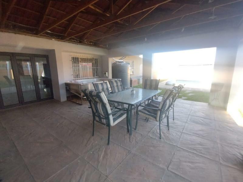 This property doesn’t just stop at aesthetics; it’s also equipped with practical features such as prepaid electricity, a water tank for sustainable living, and solar panels dedicated to keeping your pool sparkling clean year-round. The double garage with a drive-through door ensures ample parking while providing easy access to your backyard oasis.