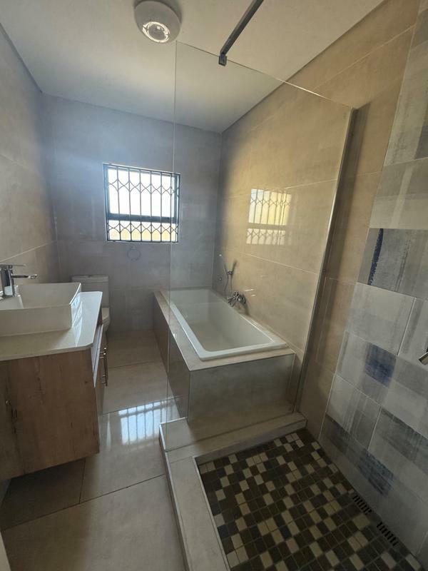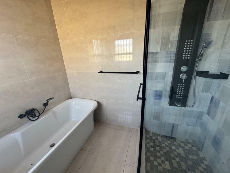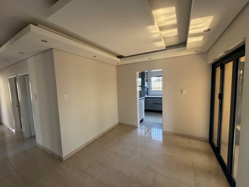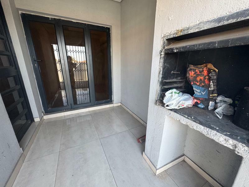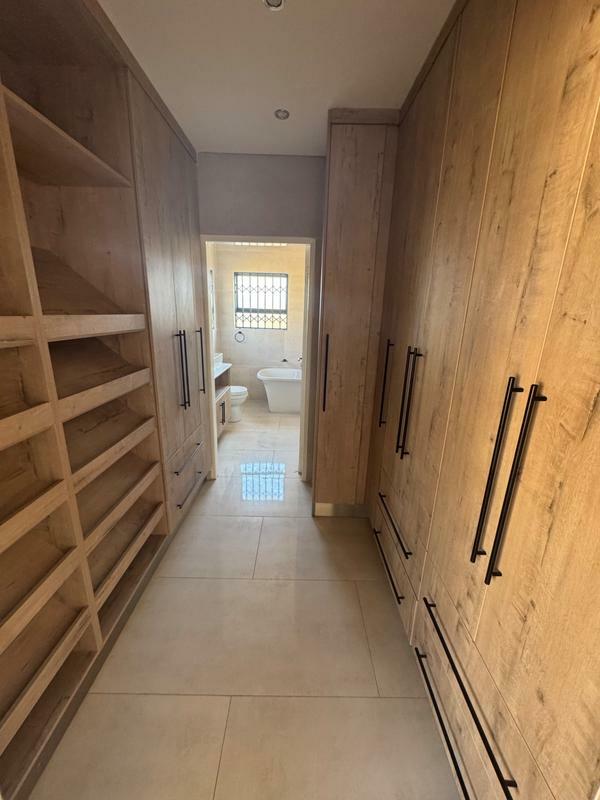 It offers 4 bedrooms with 3 bathrooms, as well as a dining room, lounge and a double garage. The kichen with seperate scullery is conveniently situated close to the entrance hall and patio with the built in braai. The main bedroom also has a lovely walk in dressing room.