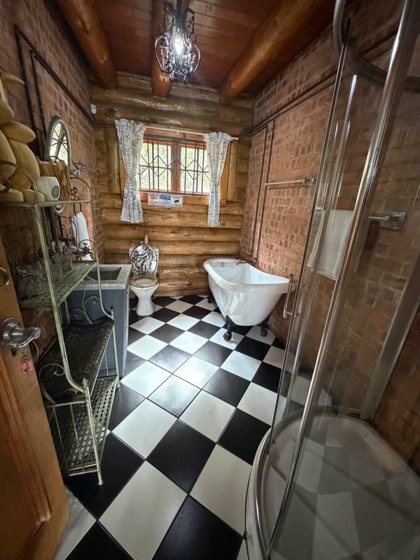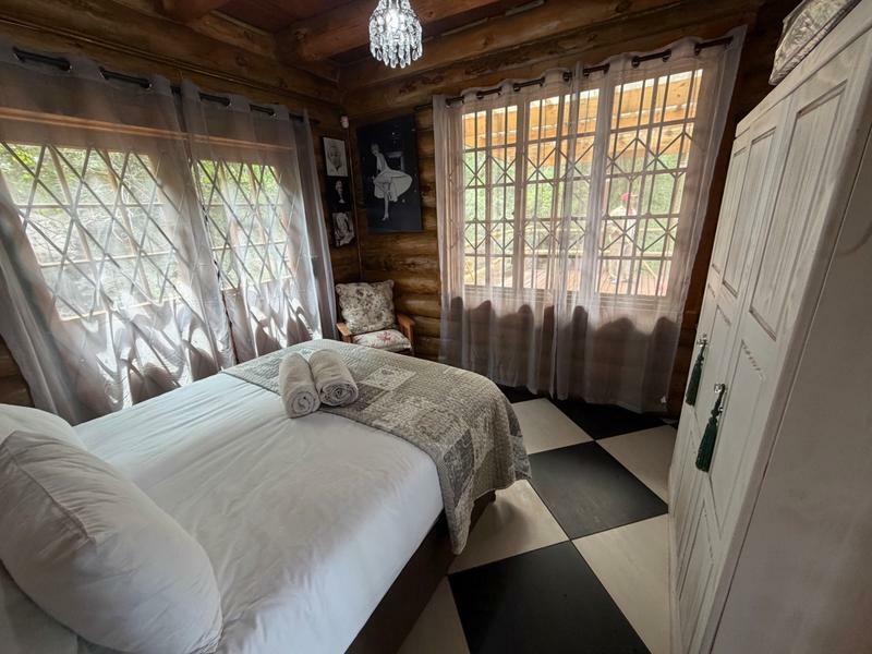 This lovely double storey log home is nestled against the mountain of Presidentsrus, overlooking the valley.