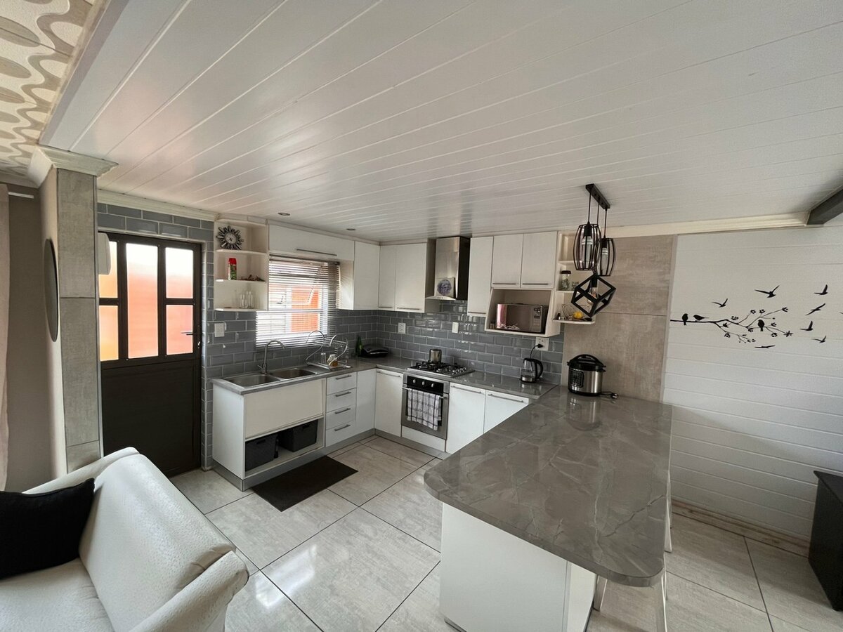 The well-appointed kitchen boasts modern appliances and ample storage space.