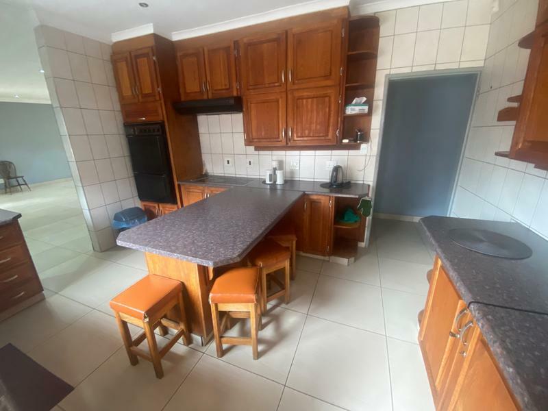 The living area is large and next to ghe kitchen with solid wooden cupboards.