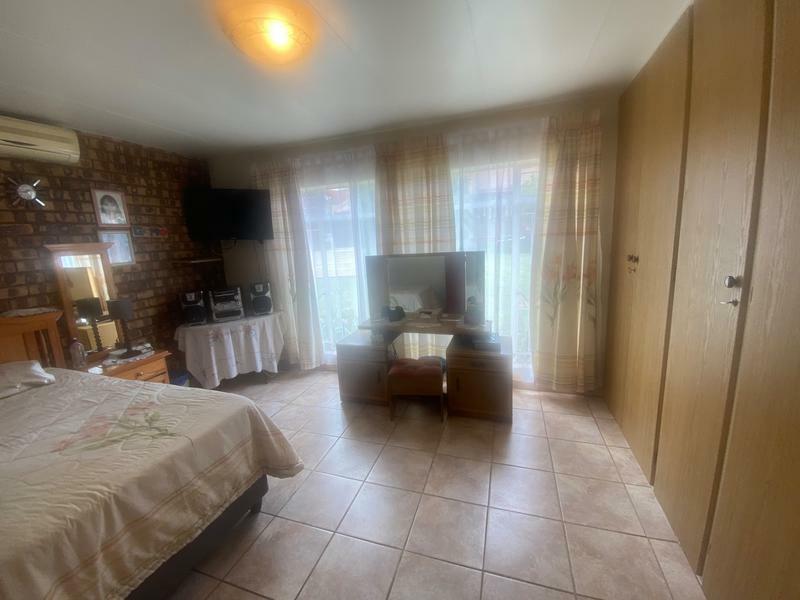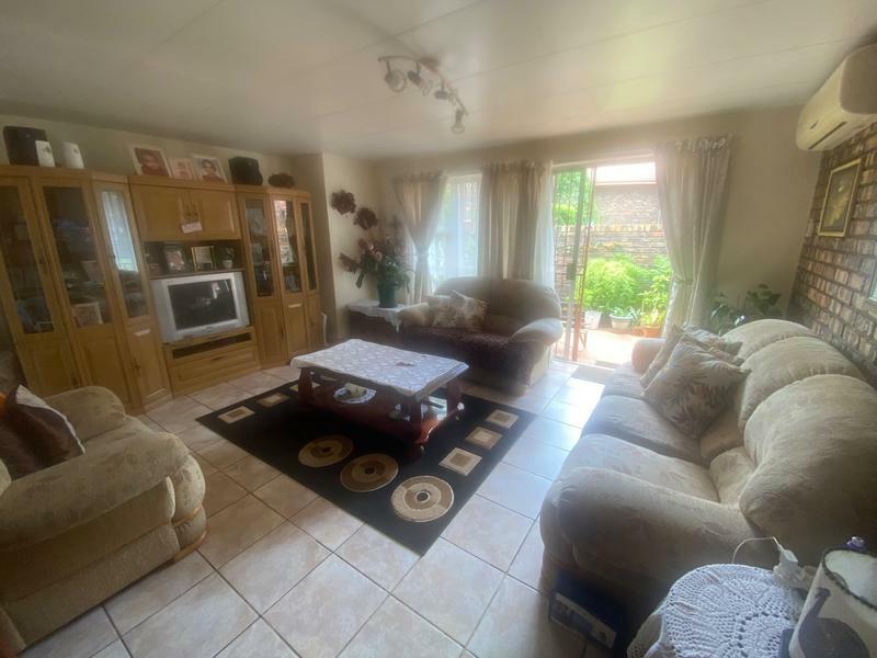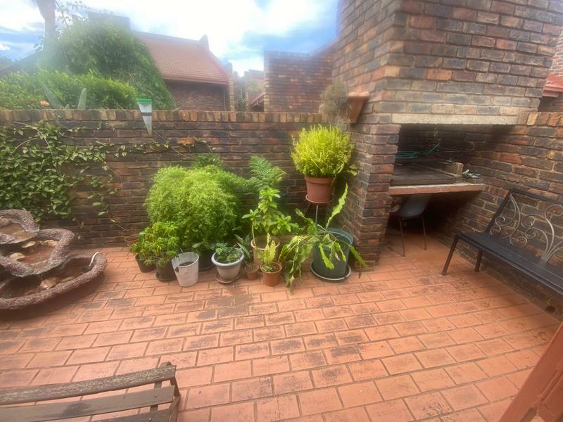 The patio with the built in braai is overlooking the luscious garden. There is also an enclosed courtyard and for secure parking, a garage and a carport.