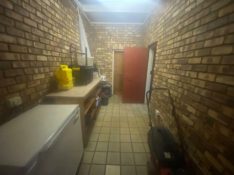 There is an enclosed stoop with a built in braai and brick paved floor.